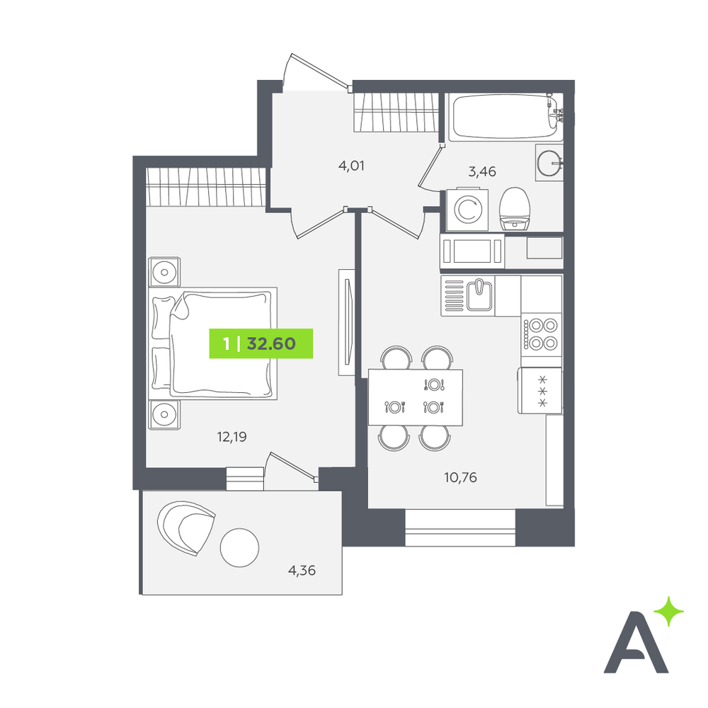 - Скидки месяца!№ 336Очередь 1, Корпус 2, Секция 2, Этаж 12