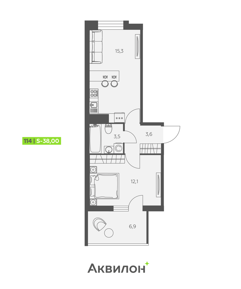 Очередь 1, Корпус 1, Секция 2, Этаж 12