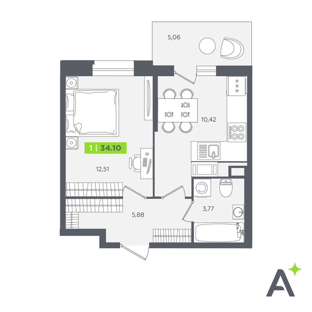 - Скидки месяца!№ 302Очередь 1, Корпус 2, Секция 2, Этаж 10