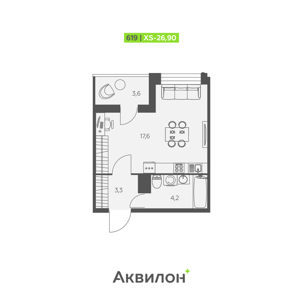 - Скидки месяца!№ 619Очередь 1, Корпус 1, Секция 5, Этаж 11