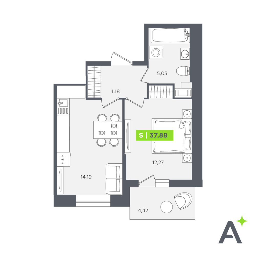 Очередь 1, Корпус 1, Секция 4, Этаж 12
