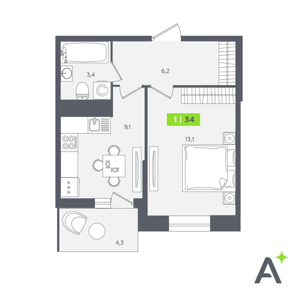 - № 32Очередь 3, Корпус 1, Секция 1, Этаж 3